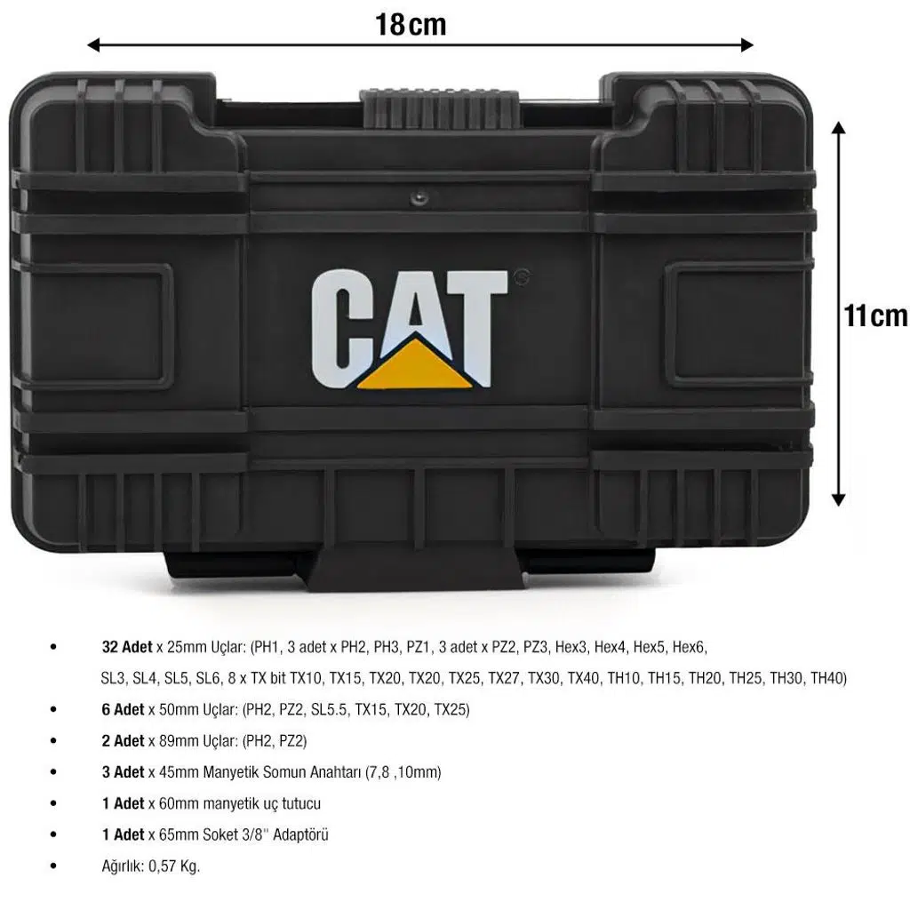 •CAT DA01902 45 Parça Manganez Fosfat Alaşımlı Vidalama Uç Seti