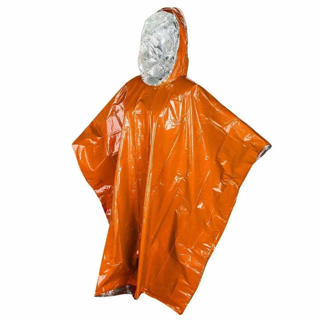 Acil durum yağmur pançosu termal PE malzemeden yapılmıştır.