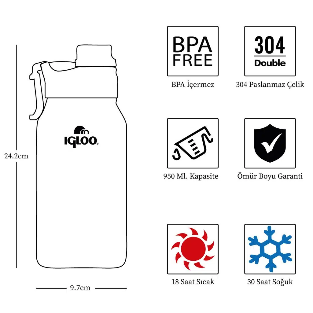 IGLOO Sportsman 950ml Termos, üstün sıcak ve soğuk muhafaza özellikleri ile tasarlanmış, kullanıcısına mükemmel bir deneyim sunan bir üründür.