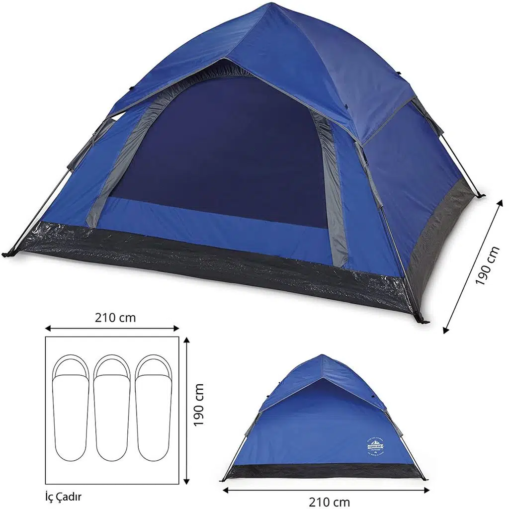3 Kişilik Aile Çadırı wurf ile Kamp, yürüyüş, geziler ve akla gelebilecek her türlü Outdoor aktivitesi için ideal.
