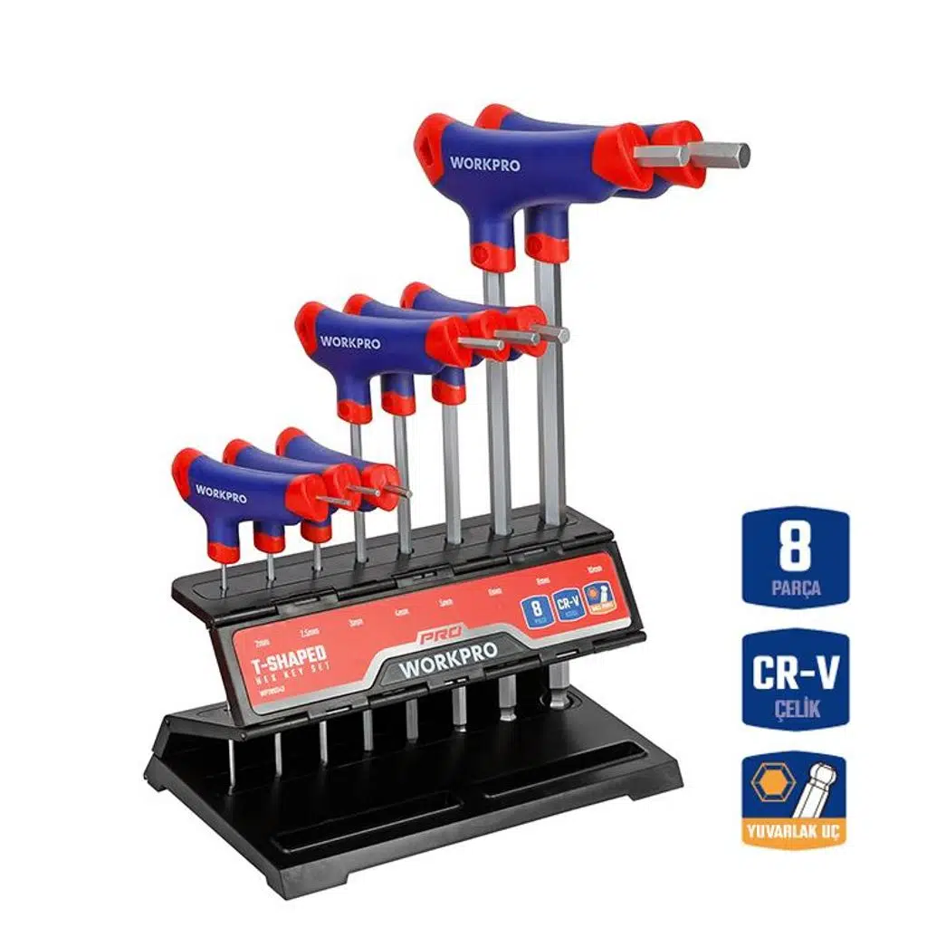 | Etiketler | WORKPRO WP200542 8 Parça CR-V Top Başlı T Tipi Uzun Profesyonel Allen Anahtar Takımı |